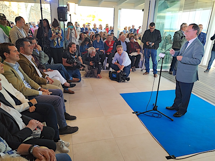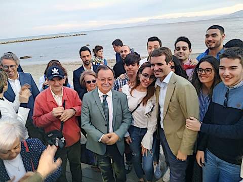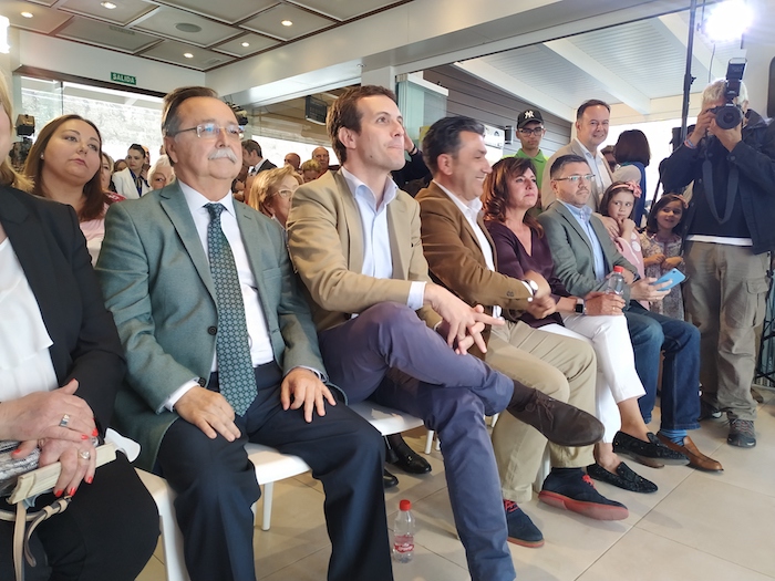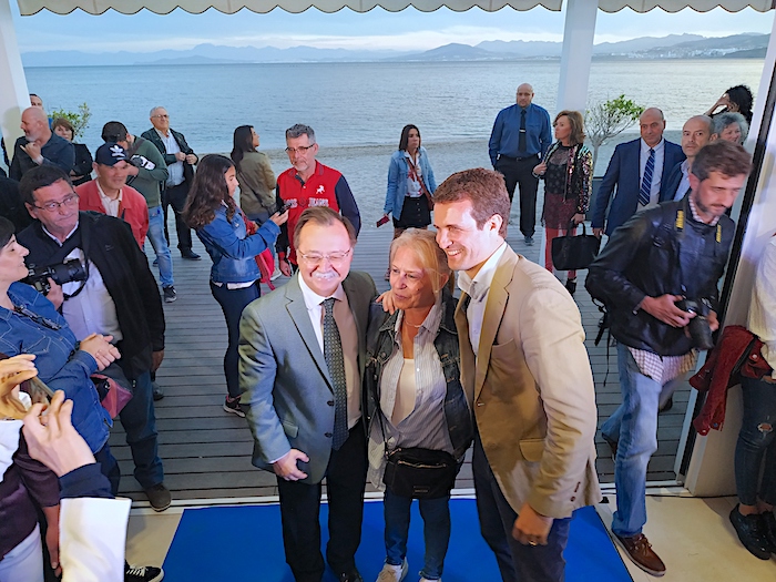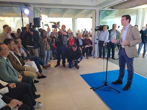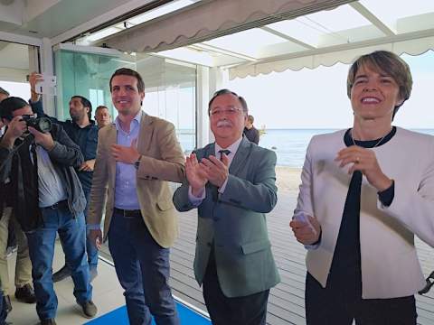 En el interior del Chiringuito de La Ribera, con la playa como telón de fondo, y lleno de asistentes, se ha llevado a cabo el acto de campaña del PP con el presidente Casado como protagonista.