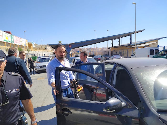 Acompañado por la cúpula de la formación de VOX Ceuta, al lado de Juan Sergio Redondo, Santiago Abascal -fiel a su compromiso- pisó Ceuta y se dirigió a la frontera. Allí, como parlamentario, departió con integrantes del Cuerpo Nacional de Policía, con la seguridad privada desplegada en los anexos de Tarajal 2 y conoció parte del perímetro costero que delimita España con Marruecos.