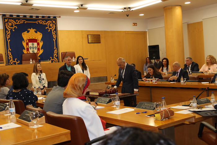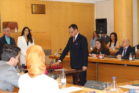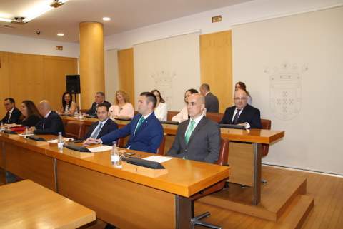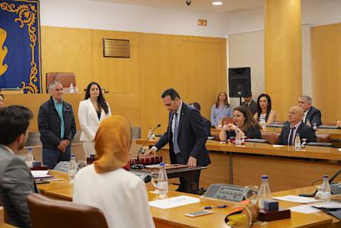 Constituída la Mesa de la Asamblea, foto de familia de los 25 concejales-diputados electos en el Salón del Trono y declaraciones de los portavoces de los nuevos grupos de la Asamblea.