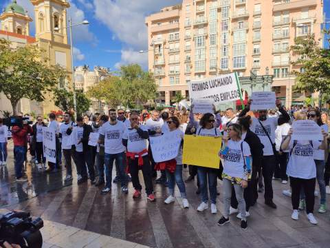 Jóvenes, empleados del sector comercio, y vinculados -de algún modo- con el hecho fronterizo, han mostrado hoy en la Plaza de los Reyes su hartazgo por las circunstancias económicas negativas que se traduce del bloqueo de la frontera del Tarajal tanto para turistas como para mercancías.