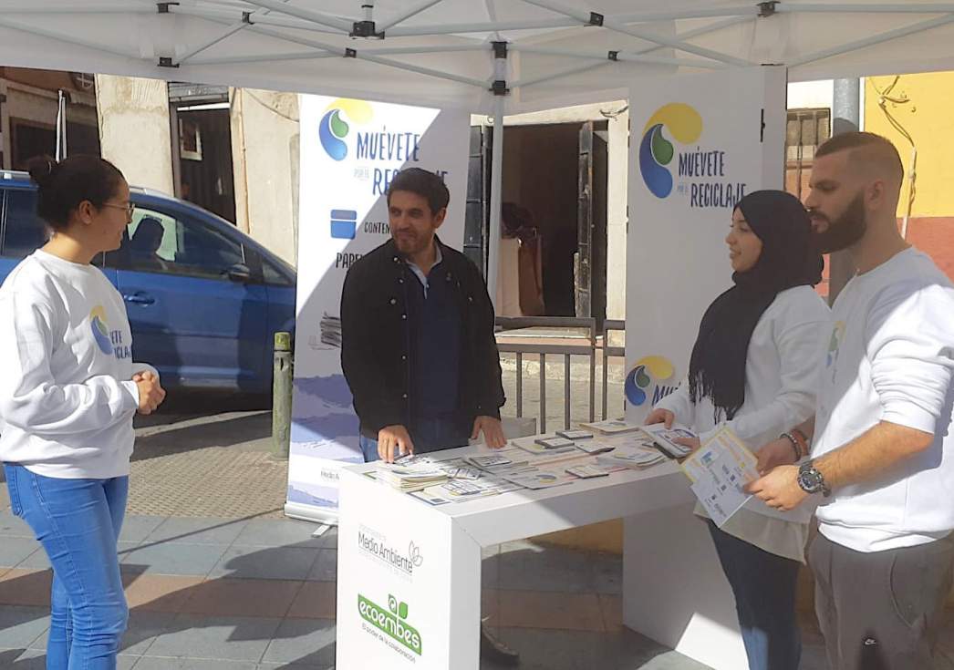 El ya director general de Medio Ambiente, Alfonso Conejo, ha estado presente en el barrio del Príncipe junto a los jóvenes que asisten al stand de 'Muévete por el reciclaje' y explicar las ventajas del reciclaje.