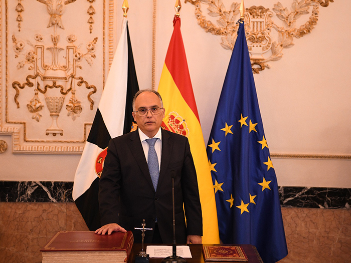 El presidente de la Ciudad, Juan Vivas, ha presidido esta mañana, miércoles día 4, a las 12.00 horas en el Salón del Trono, el acto de toma de posesión de la vicepresidencia primera y consejera de Presidencia y Relaciones Institucionales, Mabel Deu; así como de los otros nuevos cargos que han quedado tras la remodelación del Gobierno local. Como vicepresidente segundo y consejero de Educación y Cultura se ha designado a Carlos Rontomé; vicepresidente tercero y consejero de Sanidad, Consumo y Gobernación, Francisco Javier Guerrero; y en las consejerías, como consejera de Economía, Hacienda y Función Pública, a Kissy Chandiramani; como consejero de Fomento y Turismo, a Alberto Ramón Gaitán; como consejera de Asuntos Sociales a Dunia Mohamed, y como consejero de Medio Ambiente y Servicios Urbanos, a Yamal Dris.