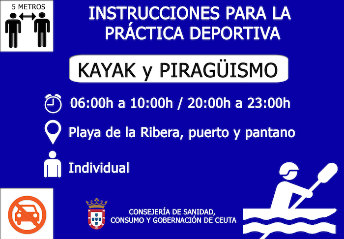 - A partir de mañana domingo, 3 de mayo, estarán permitidas las actividades de natación en aguas abiertas, piragüismo y kayak, por tratarse de deportes que pueden realizarse de manera individual. La práctica de estos deportes estará permitida dentro de las franjas horarias autorizadas.