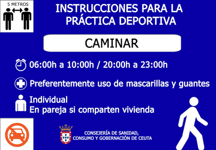 La Consejería de Sanidad, Consumo y Gobernación informa de que, para perfeccionar y evitar riesgos innecesarios en la salidas permitidas para la práctica deportiva al aire libre y los paseos, se han implementado una serie de medidas complementarias y adicionales a las que ha ordenado el Ministerio de Sanidad.