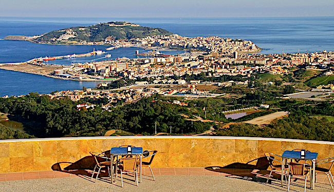 Con el Monte Hacho que ilumina un faro al norte al este o al sur, los mares que la coquetean y como no el Mediterráneo.