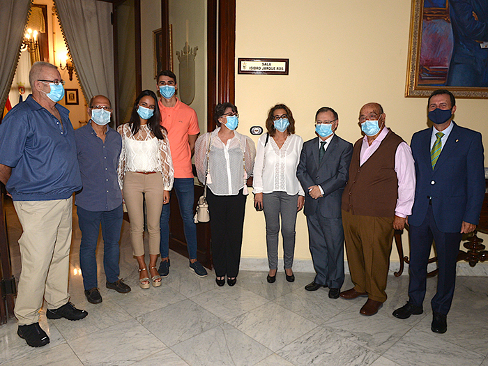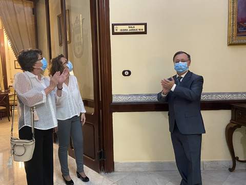 El presidente de la Ciudad, Juan Vivas, ha descubierto hoy, en presencia de su familia, la placa en recuerdo de Isidro Jarque, el funcionario municipal al que está dedicada la Sala de la Rotonda del Palacio de la Asamblea. Jarque (Ceuta, 1929-1993) es una persona recordada y muy querida en el Ayuntamiento, para el que trabajó desde principios de los años 50, tal y como hoy ha rememoradoVivas a sus hijas, Paloma y África, que han participado en este íntimo homenaje junto con el resto de familiares en la Planta Noble del Palacio de la Ciudad.
