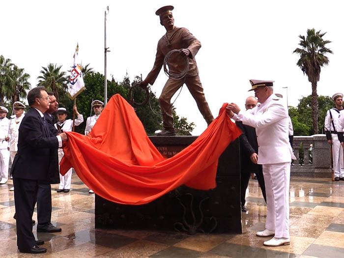 Fue un 18 de octubre de hace dos años cuando quedó inaugurada en el paseo denominado Marina Española un monumento a la figura del marinero, con la descripción a la gente de la mar de Ceuta. Hasta aquí todo normal sobre todo en el lugar que le corresponde por su nombre a la figura de un marinero con un 'cabo de guía' en la mano apoyando los pies con el traje de marinero, la cinta del 'lepanto' con la denominación Armada Española así como la figura del noray, la gaviota, los cangrejitos y estrellas de mar.