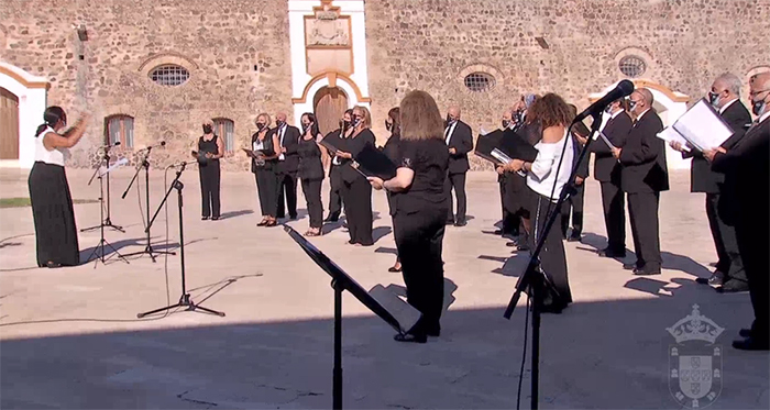 El acto además ha sido amenizado por la Asociación Coral de Ceuta ‘Andrés del Río’,y la pieza musical de las profesoras del Conservatorio María del Carmen León y Mónica Martos. Varios ceutíes se han sumado con su voz a este cante por Ceuta.