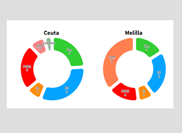 El caso de Melilla dejaría, sin embargo, al centro derecha en la oposición con una supuesto acuerdo entre CpM de Mustafa Aberchán al que se le vaticinan 9 escaños y un PSOE que con 4 alcanzarían la mayoría en detrimento del PP de Imbroda con 6, VOX 4 y Cs con 2.