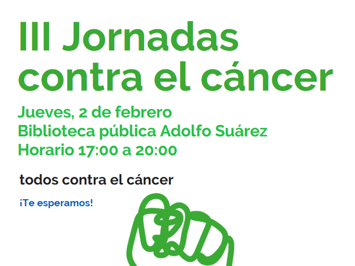 Así, el próximo jueves, día 2 de febrero, la jefa del Servicio de Vigilancia Epidemiológica, Ana Rivas, participará en la III Jornada contra el Cáncer, organizada por la AECC, y que se desarrollará desde las 17.00 horas en la sala de usos múltiples de la Biblioteca Pública Adolfo Suárez con las charlas además de Juan Gabriel Pérez de Miguel, facultativo de Cuidados Paliativos del Hospital Universitario; y los oncólogos Hassan Benis y Hanan Ahmed (se adjunta programa).