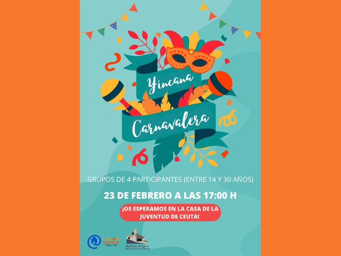 La Casa de la Juventud y la Biblioteca Pública Adolfo Suárez han organizado conjuntamente una Yincana Carnavalera, actividad que, dirigida a jóvenes de entre 14 a 30 años, tendrá lugar el próximo 23 de febrero a partir de las 17.00 horas en las dependencias del organismo juvenil, ubicadas en la calle Teniente Olmo.