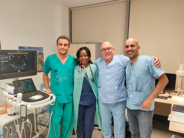 Durante su estancia, Lanzas impartirá docencia a cuatro asistentes médicos. “Esta es una categoría que se encuentra entre la enfermería y la medicina, y que se ve mucho en los países africanos. Se debe a que el acceso a la carrera de Medicina es más costoso y para la mayoría de la población es mucho más complicado. Por ello apuestan por una carrera intermedia, de unos cuatro años de duración, que sí pueden permitirse”, ha explicado Lanzas. Además, el cardiólogo les dará formación en ecocardiograma, e impartirá talleres de electrocardiograma para el resto de facultativos del hospital.