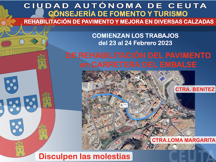 Así, los trabajos darán comienzo en la carretera de Benítez, donde entre el 20 y 24 de febrero se ejecutarán las pertinentes obras de rehabilitación del asfaltado. Además, en las jornadas del 23 y 24 también se efectuarán actuaciones en la carretera del embalse.