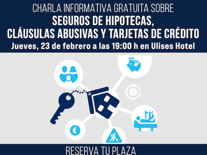 De forma gratuita, el bufete invita a los ceutíes a conocer sus derechos este jueves, día 23 de febrero a las 19:00 h en Ulises Hotel, en una charla informativa sobre Seguros vinculados a hipotecas, comisión de apertura, gastos, cláusulas suelo, así como tarjetas revolving, préstamos abusivos y usurarios, así como cualquier otra duda sobre abusos bancarios.
