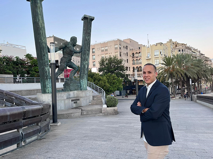 Azmán Abdalahe, 31 años, es ciego total desde los 17 años por desprendimiento de retina, tiene un Grado en Psicología por la Universidad de Valencia, con másteres en Psicología General Sanitaria y Psicología del Deporte, comenzó su trayectoria laboral en la ONCE como vendedor en 2018.