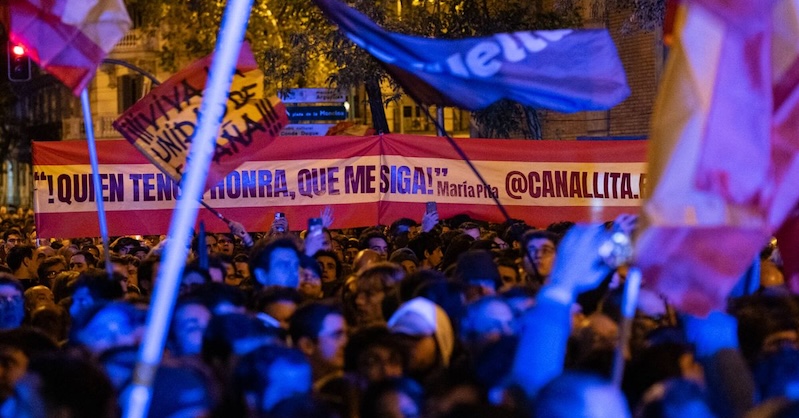 Desgraciadamente la izquierda nunca superó el hecho de haber tenido todo y haberlo perdido y tras no aceptar el resultado electoral pretende aferrarse al poder para imponer su visión a toda costa, incluso, sacrificando la propia convivencia mediante la manipulación del mensaje a través de los medios de comunicación. Este nuevo despotismo que hace bueno aquel lema ilustrado que decía "todo para el pueblo, pero sin el pueblo" es la expresión de un desesperado y descarado movimiento socialista para aferrarse al poder un mandato más. Continuidad o perdición del juego democrático todos los antipatria, anarquistas, separatistas y republicanos de ultraizquierda están unidos para dinamitar la Constitución que vertebra España como nación libre, plural, independiente y soberana. La desesperación de un político que ejerce en funciones, con precariedad y provisionalidad, lo lleva a ceder y conceder cosas que están fuera de su alcance y a no limitarse en negociar con prófugos de la justicia o condonar deudas por encima de las leyes.