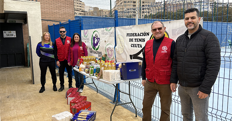 Las escuelas de tenis del Club Virtual Tenis Ceuta y de la Federación de Tenis de Ceuta con el ICD donan 300 kilos de alimentos a Cáritas Diocesana de Ceuta