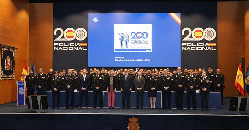 Correos ha presentado un sello que conmemora el Bicentenario de la Policía Nacional el Bicentenario de la Policía Nacional, considerado acontecimiento de excepcional interés público, y que se celebrará durante todo el 2024 con diversos actos por el territorio nacional. Bajo el lema “Comprometidos contigo”, estos doscientos años de vida son un hito histórico que ponen de relieve el papel de la Policía Nacional como el cuerpo estatal más antiguo de todas las Fuerzas y Cuerpos de Seguridad de España y que Correos celebra con esta emisión.