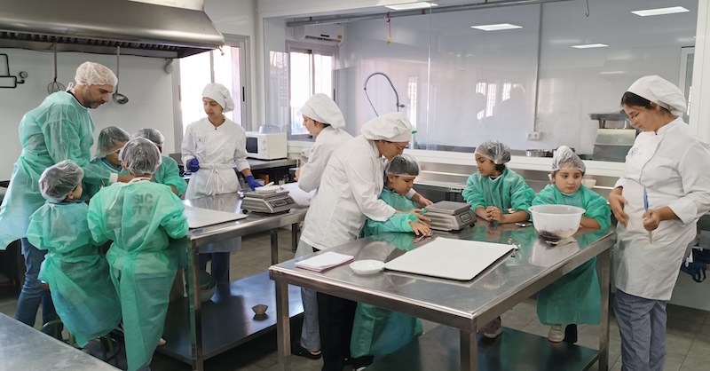 Sin duda ha sido un momento muy entrañable el poder ver juntos trabajando a todo el alumnado, teniendo en cuenta las diferencias de edades, donde los Grados Básicos han ejercido perfectamente como “profesores circunstanciales” lo que ha llevado a los más pequeños a sentirse muy importantes en las cocinas de hostelería.