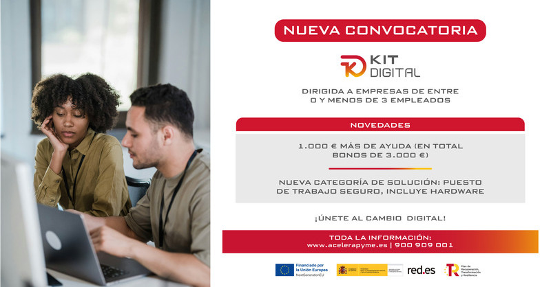 Abierto el formulario para que las microempresas y autónomos/as del segmento III del programa Kit Digital, de entre 0 y menos de 3 empleados, puedan solicitar el bono de 3.000 euros y los ya beneficiarios de la cuantía anterior, los 1.000 euros adicionales