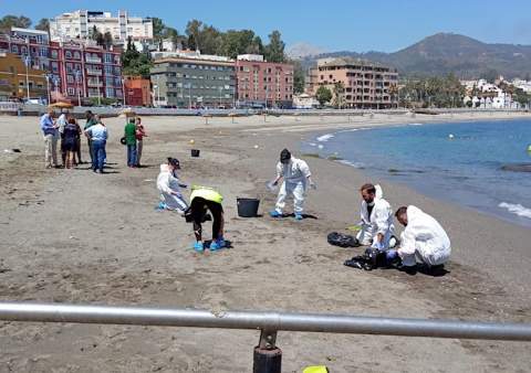 La Playa Benítez, cerrada al público por la presencia de vertido de fuel llegado del mar