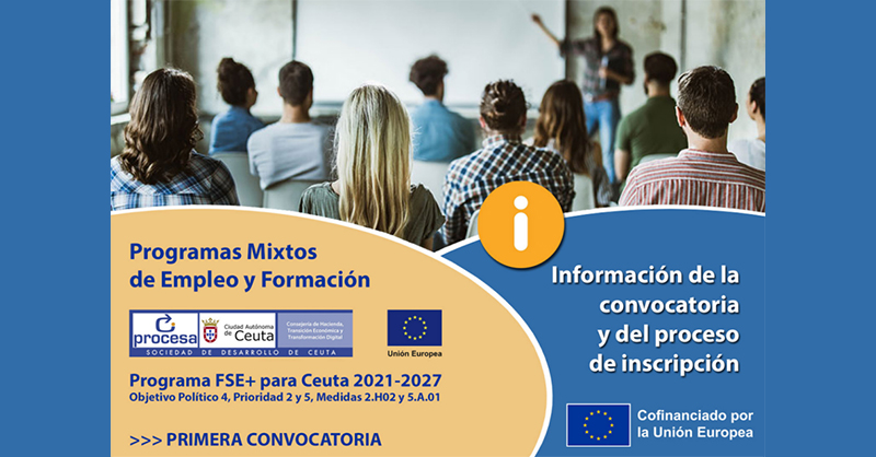 La Consejería de Hacienda, Transición Económica y Transformación Digital de la Ciudad Autónoma de Ceuta, aprobó el pasado día 2 de agosto de 2024, el procedimiento para la concesión de subvenciones públicas dirigidas a entidades sin ánimo de lucro y destinadas a la financiación de Programas Mixtos de Empleo y Formación, en el marco del Programa FSE+ para Ceuta 2021-2027. Se han presentado distintos proyectos para atender a los participantes como alumnos trabajadores en la ejecución de los mismos.
