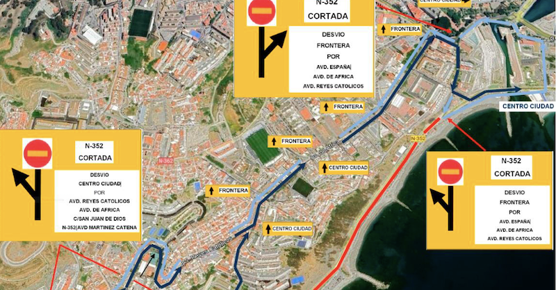 - N-352 kilómetro 2,1 (Intersección Almadraba) - Avda. Reyes Católicos – Avda. de África – C/San Juan de Dios – N-352 km 0,35 (Calle Enrique El Navegante)
