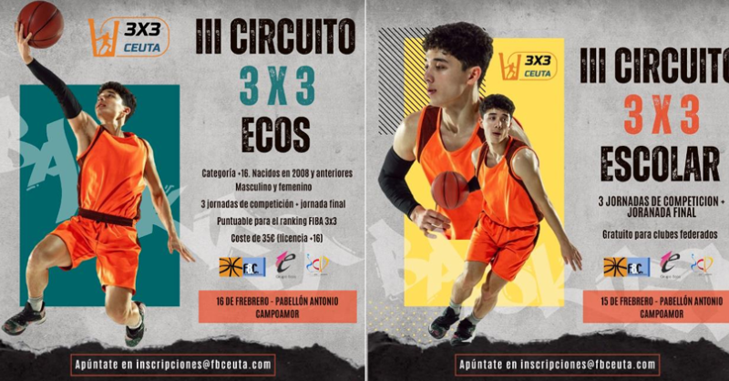 La Federación de Baloncesto de Ceuta (FBC) ha anunciado la apertura del plazo de inscripción para la tercera edición del circuito 3x3 Grupo Ecos, dirigido a mayores de 16 años, y el circuito 3x3 para federados de edad escolar. Ambas competiciones comenzarán el fin de semana del 15 y 16 de febrero y finalizarán en junio en un recinto al aire libre.