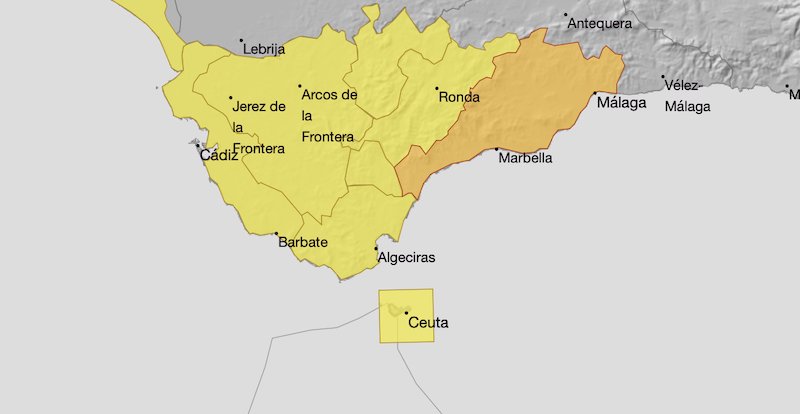 Cielos cubiertos acompañados de precipitaciones débiles a moderadas, con probabilidad de ser fuertes e ir acompañadas de tormentas por la tarde. Temperaturas con pocos cambios. Vientos de flojos a moderados de componente sur, tendiendo a componente este al final de la tarde. Esta es la predicción de la Agencia Estatal de Meteorologia para Ceuta en la jornada de mañana viernes en la que avisa con alerta amarilla por la acumulación de precipitaciónes que se espera en la ciudad autónoma.
