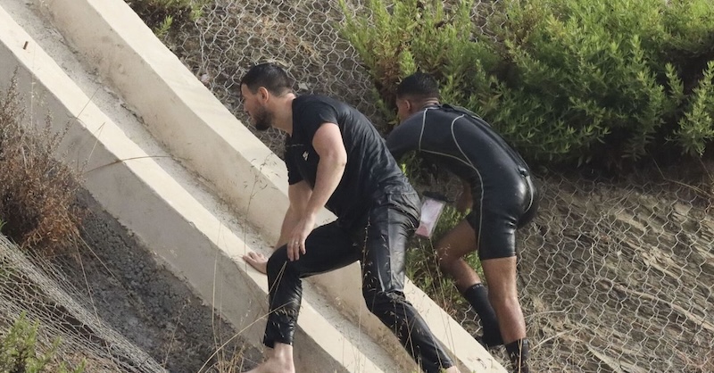 No hay noche, como la pasada, en la que no intenten salir nadando centenares de marroquies hacia Ceuta, desde los arenales de Castillejos o desde la zona más próxima a la frontera, sin que, en apariencia, las autoridades marroquies frenen en tierra esta descontrolada salida de sus nacionales. Aunque refuerza su control marìtimo-costero -si el mar lo favorece- las muy complicadas condiciones climáticas, con el 'taró' de Levante en la misma lámina de la superficie del agua, hace realmente difícil dar con los 'nadadores'...