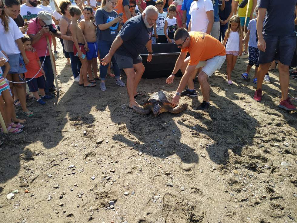 Unas 200 personas despiden a la última tortuga recuperada por el CECAM