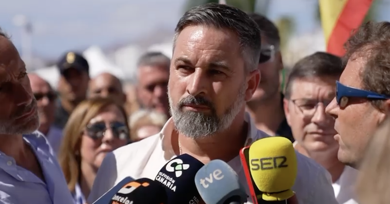 "La inmigración de carácter masivo origina consecuencias que tienen que vivir en su día día todos los españoles y todos los canarios". " Solo VOX -ha añadido- se opone a la invasión migratoria; venga de donde venga y venga como venga, por tierra por mar o por aire. "Nos da igual que vengan saltando las vallas de nuestras fronteras; en los barcos de los traficantes o que vengan disfrazados de turistas a nuestros aeropuertos", ha dicho Abascal, que ha criticado duramente a las ONGs "disfrazadas de solidarias; a los multimillonarios globalistas disfrazados de filántropos o los políticos traidores, disfrazados de leales y de defensores del bien común, que con los impuestos de los españoles llaman, financian y mantienen esta invasión migratoria".