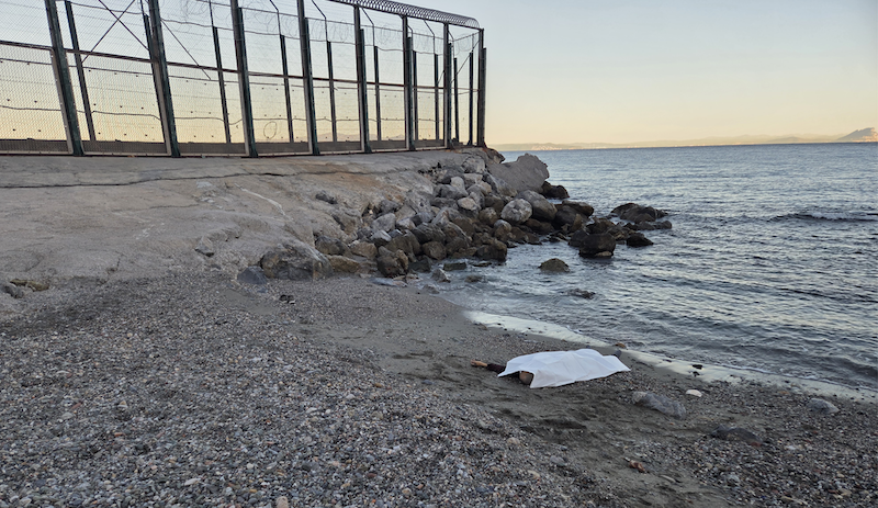 * La fotografía adjunta es del cuerpo del último cadáver encontrado en el rompeolas de Benzú el jueves pasado.