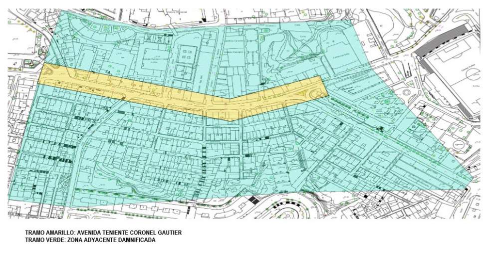 Sólo podrán optar a la subvención recogida en este nuevo apartado las empresas con establecimiento a pie de obra, en la zona considerada de mayor afectación, que es la que se encuentra delimitada entre el cruce de la avenida Teniente Coronel Gautier con la avenida Lisboa (punto de inicio de corte de tráfico) y el cruce formado por las avenidas Teniente Coronel Gautier, Otero y la plaza Víctimas del Terrorismo (se adjunta plano).