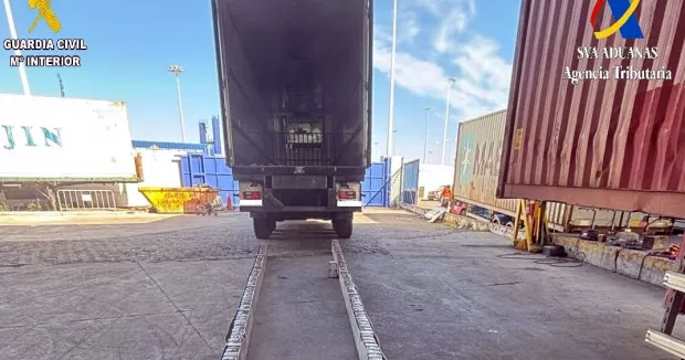 El pasado 9 de noviembre, en el ejercicio de las funciones de control fiscal y aduanero que realizan los agentes de cabotaje sobre los vehículos que llegan a Algeciras procedentes de Tánger (Marruecos), se apreciaron anomalías en la estructura de los bajos y vigas de un remolque que presentaba soldaduras, remates y configuración poco habituales.