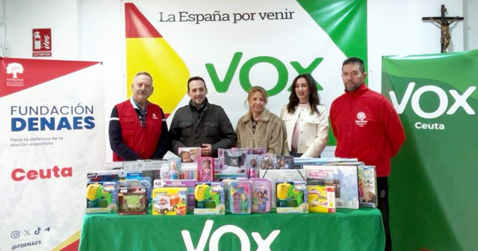 VOX Ceuta ha entregado este lunes a Cáritas Castrense todos los juguetes que afiliados y simpatizantes han donado durante la campaña de recogida de juguetes que la formación ha llevado a cabo durante el mes de diciembre. Una iniciativa que, año tras año, el partido pone en marcha con el objetivo de que ningún niño ceutí se quede sin abrir regalos el Día de Reyes.