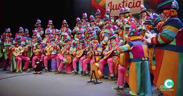 La circunstancia de ser la primera agrupación en alzar el telón del COAC 2026 se ha alojado en los primeros de sus cuplés, en el que han ironizado con la autora del cartel, encargada de la elección en el sorteo. En el segundo chiste, se han centrado en los implantes capilares, deteniéndose en aquellos integrantes del grupo que más lo necesitan. "Cádiz, por tu culpita, otra vez he caído", remata un estribillo muy armonioso.