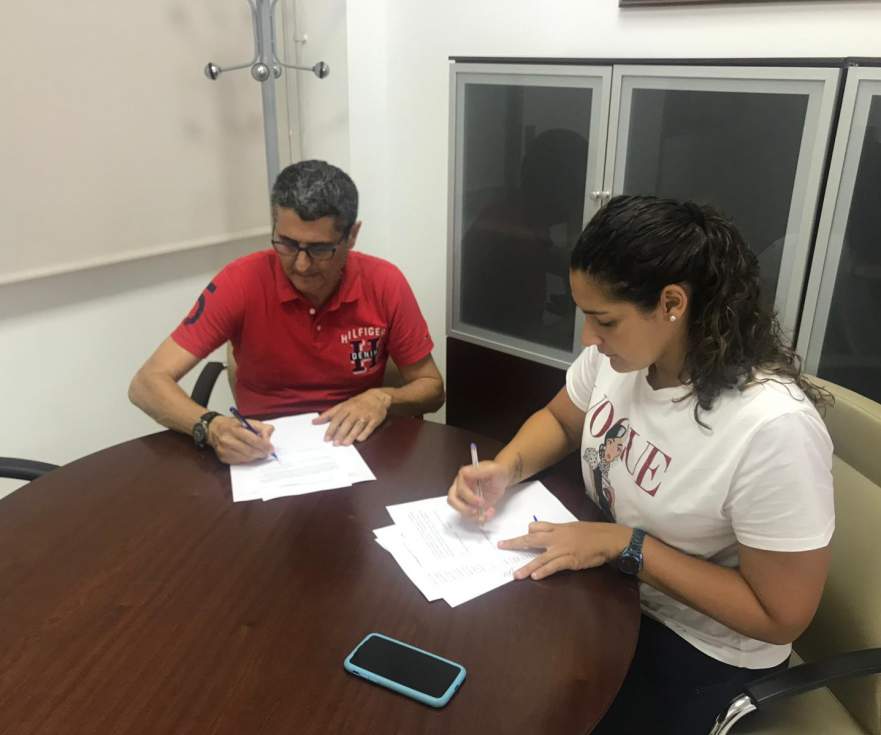 Antonio García Gaona, presidente de la FFCE, y Lorena Miranda, Consejera de Juventud y Deportes de la Ciudad Autónoma de Ceuta, han firmado la cesión de estas nuevas instalaciones en el día de hoy.