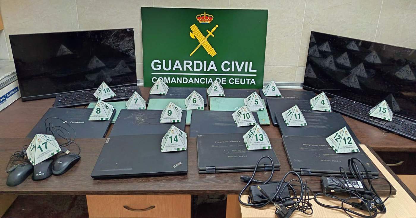 Recuperados en una cueva de Benzú 14 ordenadores portátiles sustraídos en el CEIP Pablo Ruiz Picasso