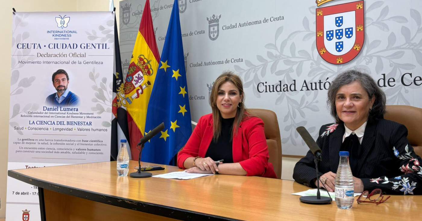 La consejera de Sanidad y Servicios Sociales de Ceuta, Nabila Benzina, acompañada por la presidenta del Colegio de Psicólogos de Ceuta, Dolores Escalante, ha anunciado que la ciudad se convertirá este lunes de manera oficial en 'Ceuta, ciudad gentil', una iniciativa impulsada en colaboración con el Movimiento Internacional de la Gentileza y que la sitúa como espacio de encuentro, convivencia y compromiso con los valores que fortalecen la cohesión social.