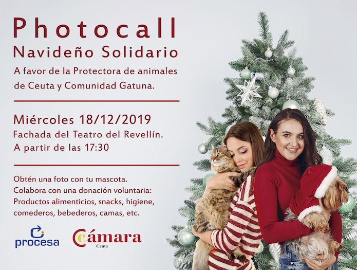 La Cámara de Comercio, con la financiación de PROCESA, organiza para el miércoles 18 desde las 17:30 un Photocall Navideño solidario a favor de la Protectora de Animales de Ceuta y Comunidad Gatuna.
