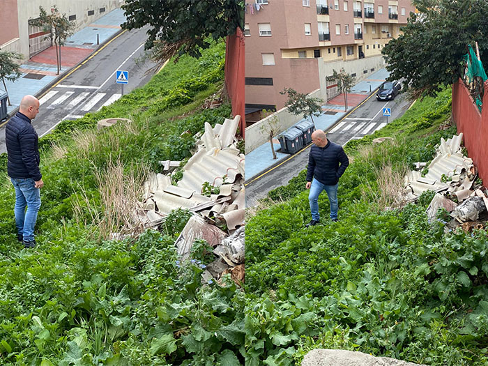 “incomprensible lo que está sucediendo últimamente con la aparición de residuos en las distintas barriadas de la ciudad”. “Hace pocas fechas los socialistas tuvimos que denunciar la acumulación de las algas retiradas de la playa en una parcela de la zona portuaria; ahora el caso es aún peor. Restos de materiales conteniendo amianto depositados en la zona de la barriada del Poblado de Sanidad”