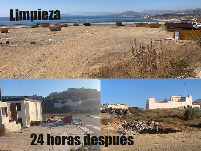 Sin embargo, apenas 24 horas después de la limpieza, la zona volvía a estar llena de basuras como puede apreciarse en las fotos. Una situación que demuestra el poco civismo de quienes han tirado la basura en la zona en apenas un día. Es por ello, que desde el Gobierno local han querido hacer un llamamiento a la responsabilidad y el comportamiento cívico después de que se haya repetido este depósito de basuras de manera incontrolada en la zona.