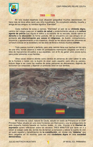 El presidente de la Ciudad, Juan Vivas, ha recibido hoy a Julud Hattachi, alumna de sexto de primaria que ha ganado, en ese nivel escolar, el certamen nacional Una Constitución para todos, que estimula y promueve entre los estudiantes la reflexión acerca del valor y la importancia de la Carta Magna.