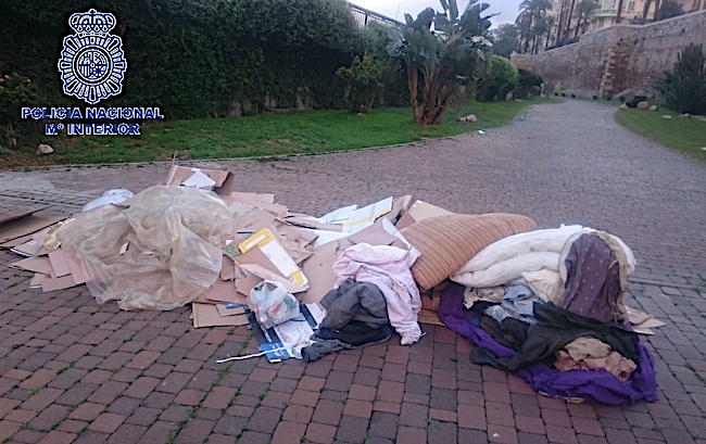 El dispositivo se inició a las 09:00 horas y se dio por finalizado a las 11:00. Los agentes solicitaron la presencia de los servicios de limpieza de residuos sólidos que procedieron a la retirada de mantas, plásticos y cartones que se hallaban allí acumulados.