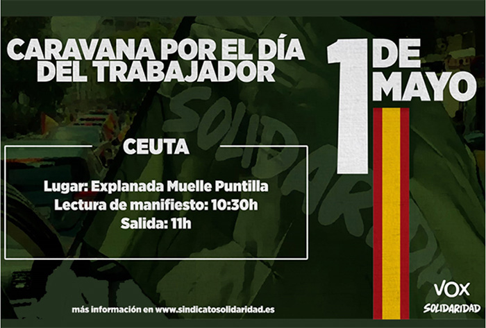 Mañana 1 de mayo, VOX ha organizado una concentración junto al sindicato Solidaridad en el que se hará pública la lectura del manifiesto conjunto en defensa de los trabajadores de España.