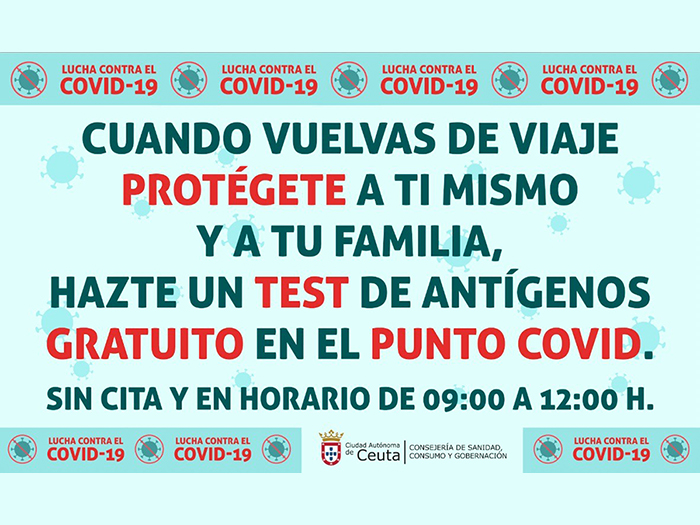 Por ese motivo, la Ciudad va a reforzar la difusión de este operativo colocando dos carteles informativos en el puerto: uno a la salida de los pasajeros y otro en la de los vehículos. En ellos se trasladará el siguiente mensaje: “Vuelves de viaje, protégete a ti mismo y a tu familia, hazte un test de antígeno gratuito en el punto COVID”.