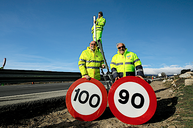 El director general de Tráfico, Pere Navarro, ha señalado durante el acto en el que se ha procedido a cambiar la última señal de tráfico con límite a 100 km/h, y en el que también ha participado el director general de Carreteras, Javier Herrero, que "esta reducción de la velocidad debe ir acompañada de una mayor vigilancia y control por parte de las policías encargadas de la vigilancia del tráfico y de mejoras y actuaciones en el diseño de las infraestructuras por parte de los titulares de la vía".