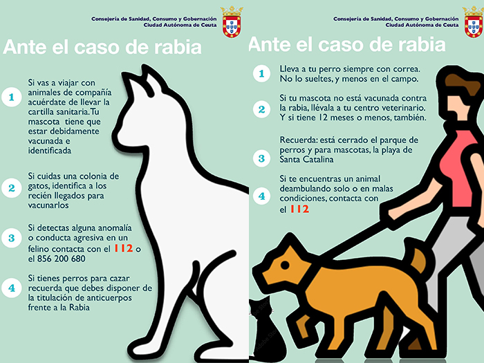 La Consejería de Sanidad y Consumo ha publicado este martes, día 19, una edición extraordinaria del Boletín Oficial de la Ciudad donde se recoge el decreto que recoge las medidas necesarias en virtud del Plan de Contingencia para el control de la Rabia en Animales Domésticos en España (2013) tras la declaración del brote de rabia, nivel 1 de alerta. Entre otras medidas, se sacrificarán los animales vagabundos tras 21 días de su recogida.