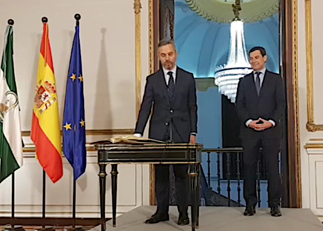 Juan Bravo, arropado por el presidente de Andalucía, tomó posesión como consejero de Hacienda